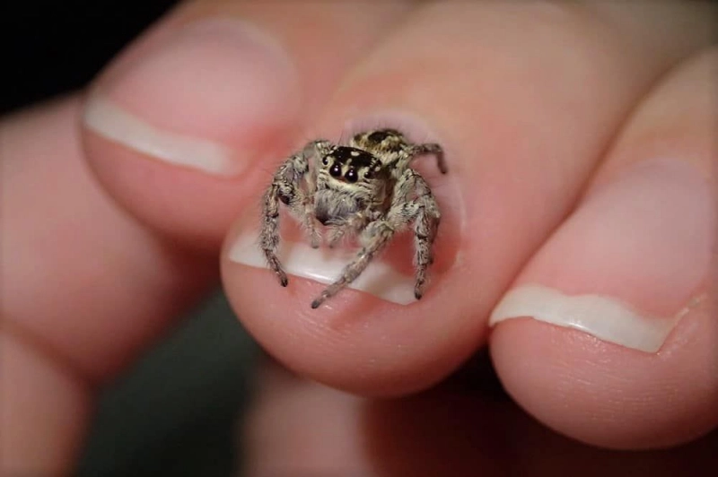 Паук скакун. Здравствуйте. Не велик, ну удал. Размерчик впечатляет - 15 мм. Всего-то! Живу дома, потому что симпатишный.